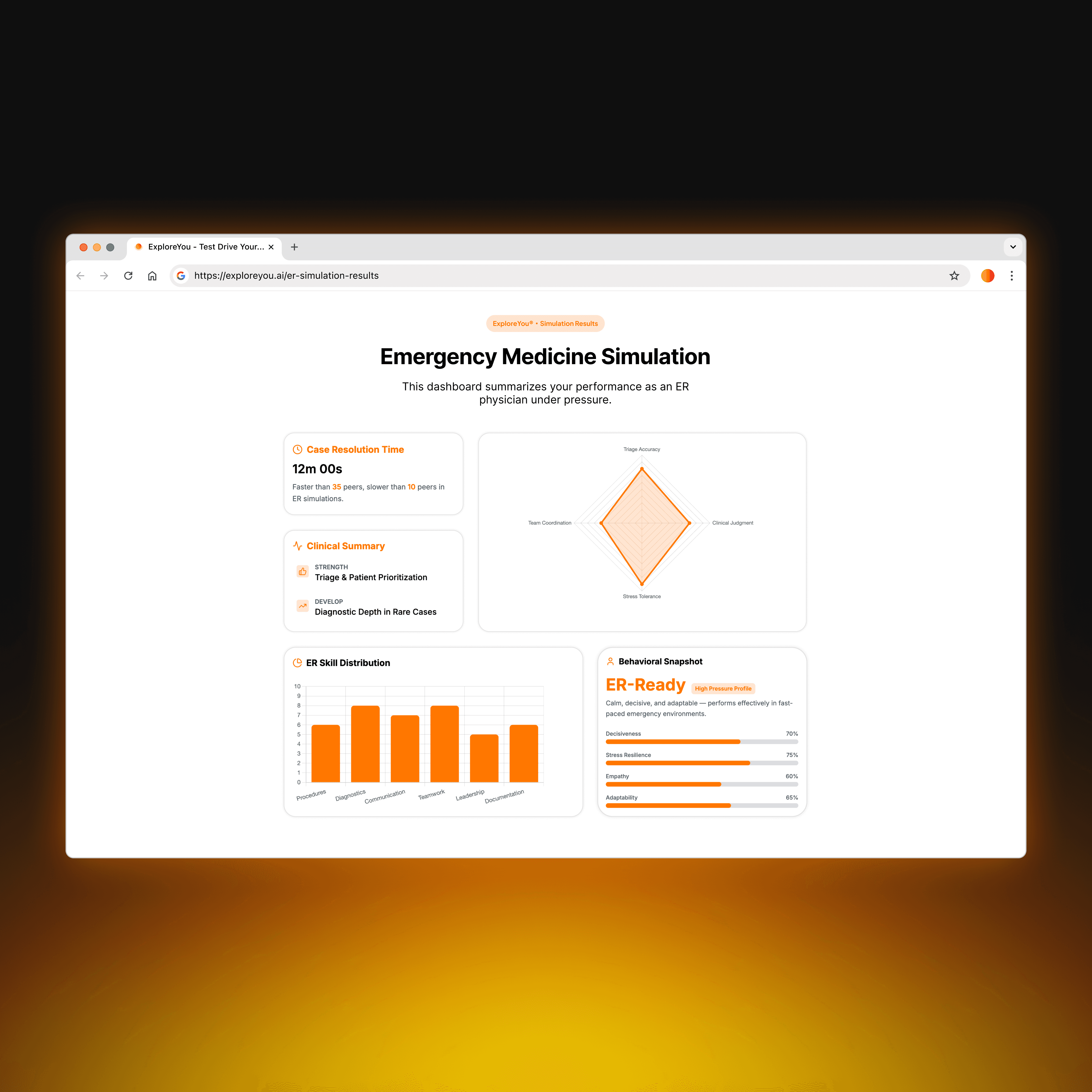 ExploreYou lets high school students step into simulations of real professions and discover who they are and what they like-before making life-shaping decisions.